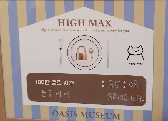 문제방 특유의 매력에 푹 빠져, 164번째 방탈출은 홍대에 위치한 오아시스 방탈출의 '하이 맥스(HIGH MAX)'로 향했다. '퀴즈 카페'를 무척 재미있게 플레이했던 터라 비슷한 테마가 또 어디 없을까 찾아 헤맸는데, 드디어 발견했다는 생각에 큰 기대를 안고 도전했다.